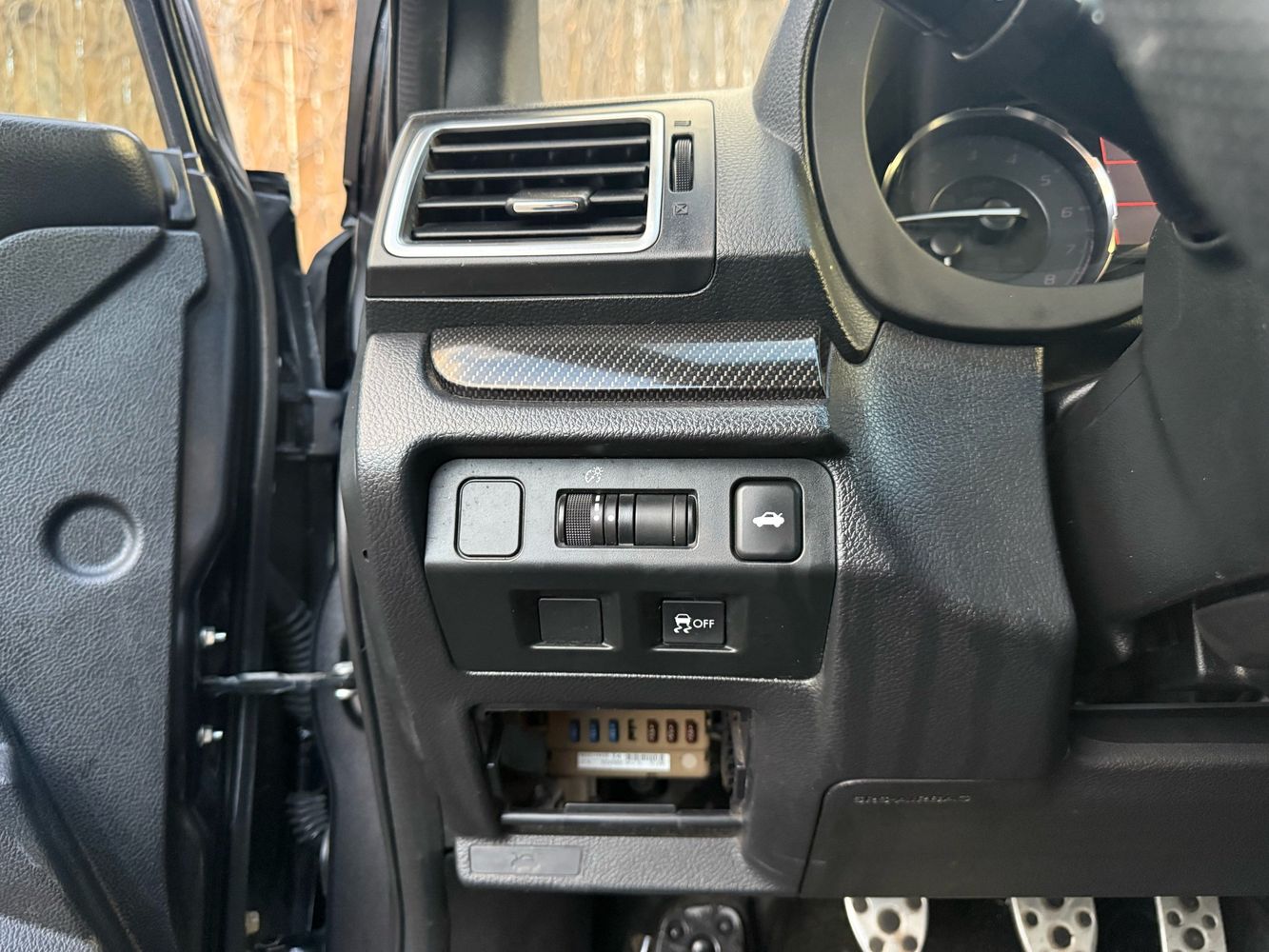 Console insert material: Simulated carbon fibre and metal-look console insert